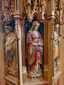Vi får et innblikk i katedralens begivenhetsrike historie og blir vist eksempler på arkitektoniske stilarter fram til sen-middelalderen.