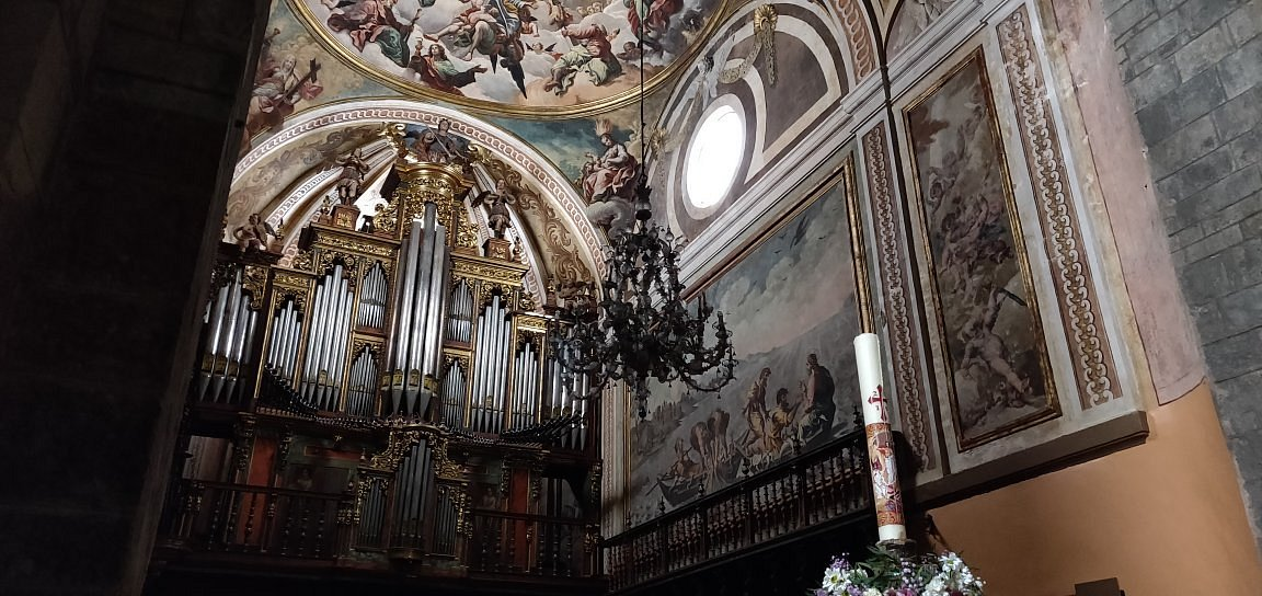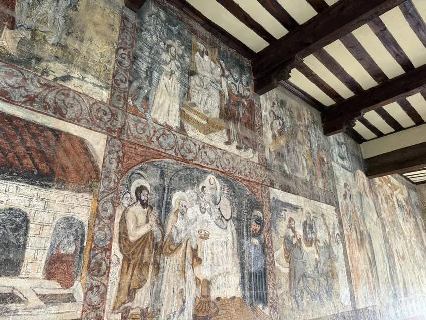 En av de mest fascinerende seksjonene i den kollegiale kirken er det trapesformede klosteret. Her finner vi veggmalerier (fresker) som viser scener fra Det nye testamente datert tilbake til 1200-tallet.
