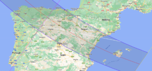Sentrale observasjonssteder befinner seg i områder langs sentrallinjen (den røde linjen) mellom Zaragoza og Madrid. Her er det mulig å få uavbrutt utsikt til formørkelsen ettersom det er gode sjanser for klar himmel på denne tiden av sommeren. I sin helhet varer den totale solformørkelsen inntil 1 minutt og 50 sekunder.